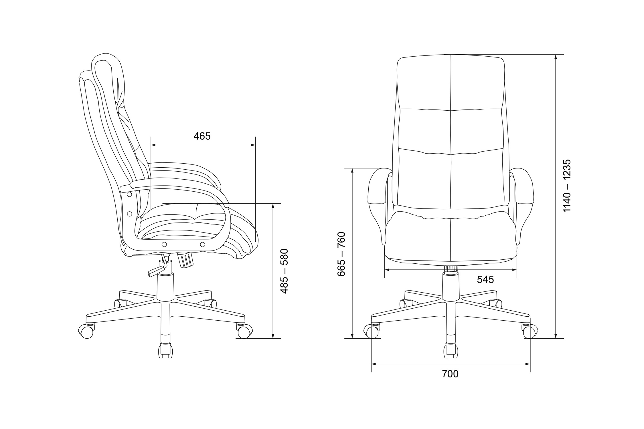 Диаметр колес - 5 см. Высота сиденья - 58 см. Высота с подлокотниками - 76 см. Ширина сиденья - 54.5 см. Глубина сиденья - 46.5 см. Материал колес - с накладкой PU. Механизм качания с регулировкой под вес и возможностью фиксации в рабочем положении. Подлокотники пластиковые с мягкими накладками. Регулировка под вес. Крестовина пластиковая.